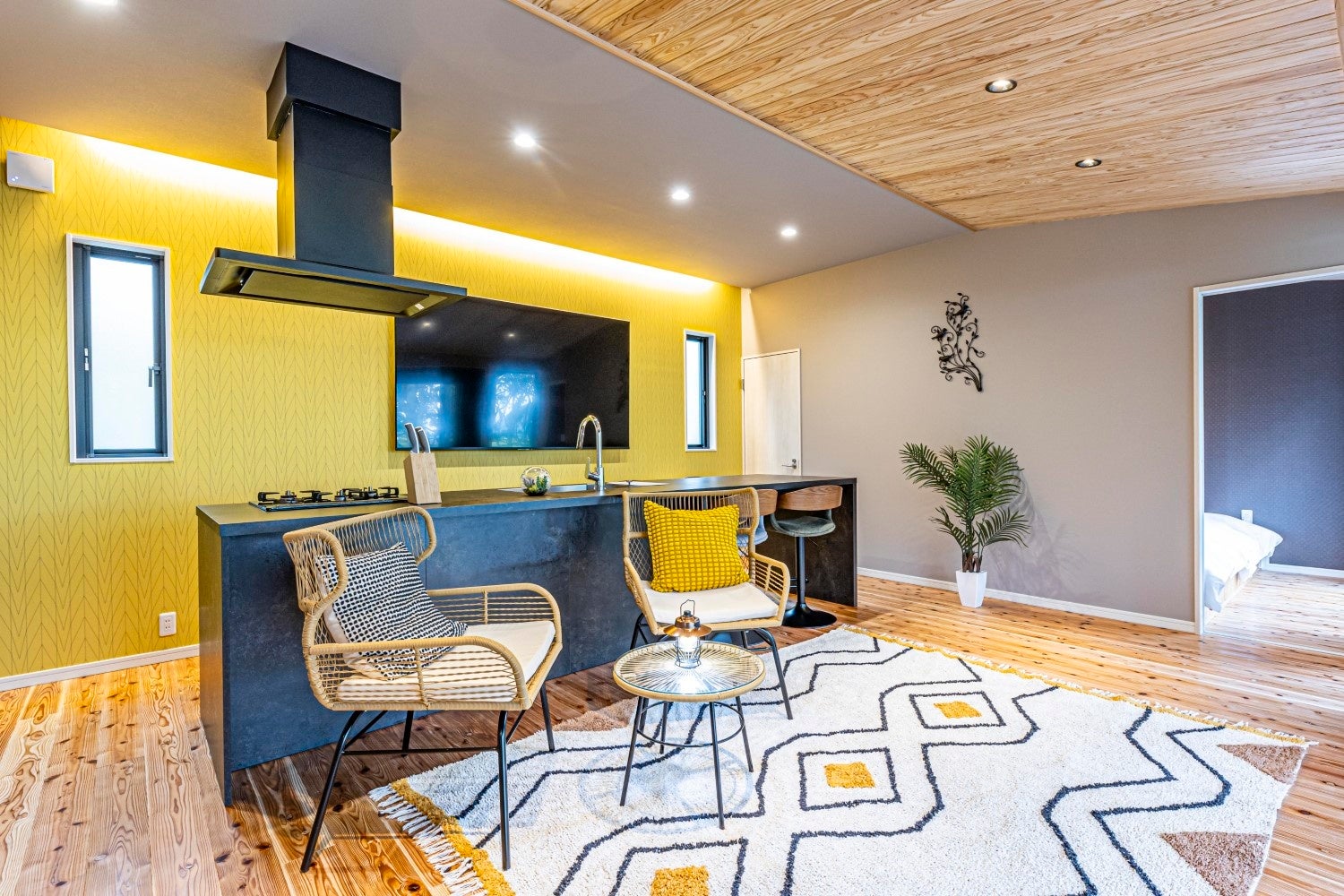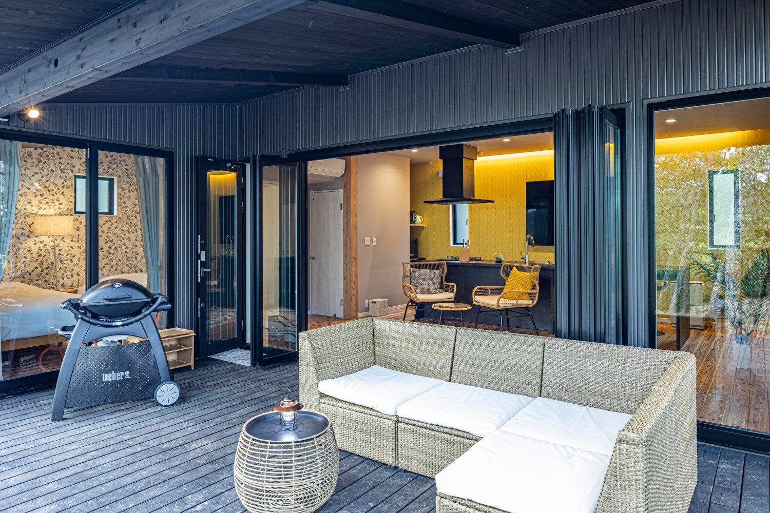 2ベッドルームを揃えた広々とした客室には、大自然の中でゆっくりとチルタイムを満喫できる、アイランドキッチン、アウトドアリビングをご用意。