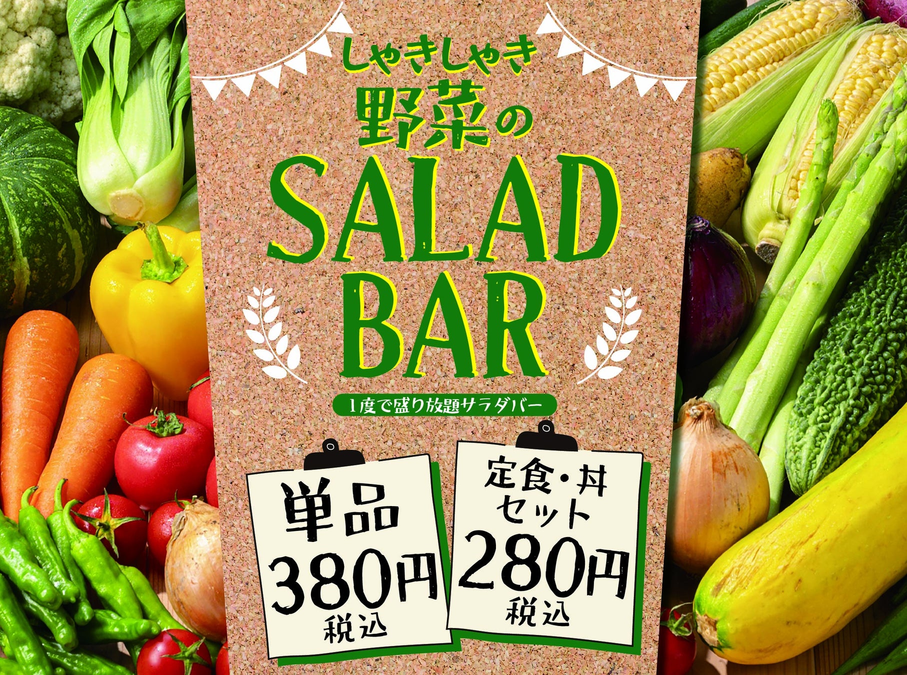 サラダバー/単品 380円、定食・丼メニューとのセットでは280円