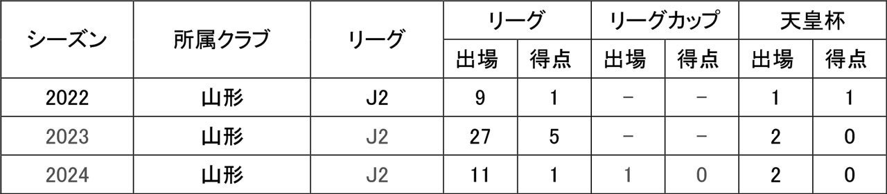 所属歴/バディSC江東 – FC東京U-15深川 – FC東京U-18 – 東洋大学 – モンテディオ山形