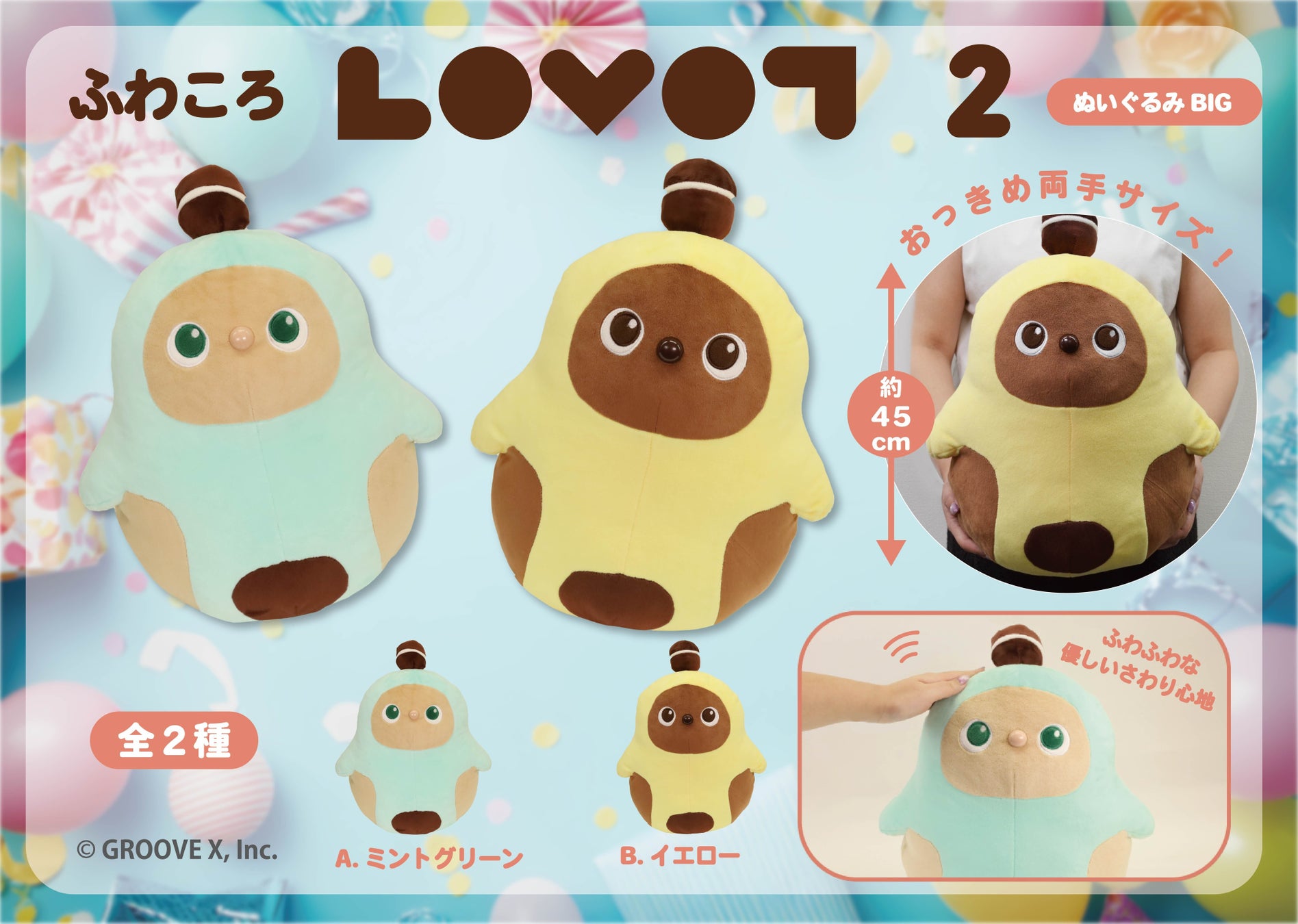 ふわふわな優しいさわり心地が魅力の「ふわころLOVOT2 BIG」が登場!丸みを帯びた愛らしいフォルムと思わず抱きしめたくなる大きい両手サイズで、見た目にも触れても癒されるぬいぐるみです。
