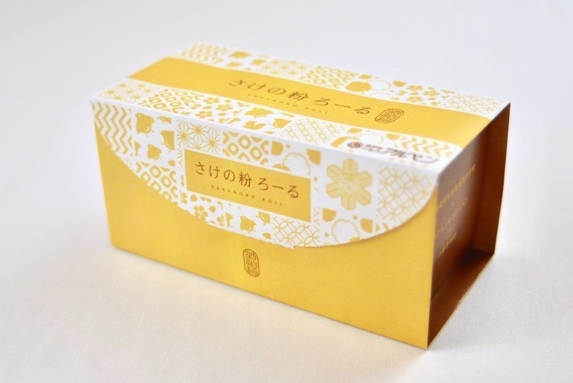 ネーミングは、パウダー名「さけの粉」を引用し「さけの粉ろーる」に決定。パッケージ作成は、高校⽣に学びの機会を提供するため、地元企業の協力を得ながら高校⽣と共に行いました。パ ッケージには伝統的な和柄をモチーフに「春、⽺蹄⼭、自然、雪解け」を表現。このような取り組みが、今後も末永く共に歩めること(七宝つなぎ)、子供たちの成⻑を願う気持ち(麻の葉)など高校⽣からもらったキーワードもデザインに反映しました。また倶知安農業高校の校章や二世古酒造のロゴもモチーフとして加え、この企画を一緒に作り上げた喜びを表しています。