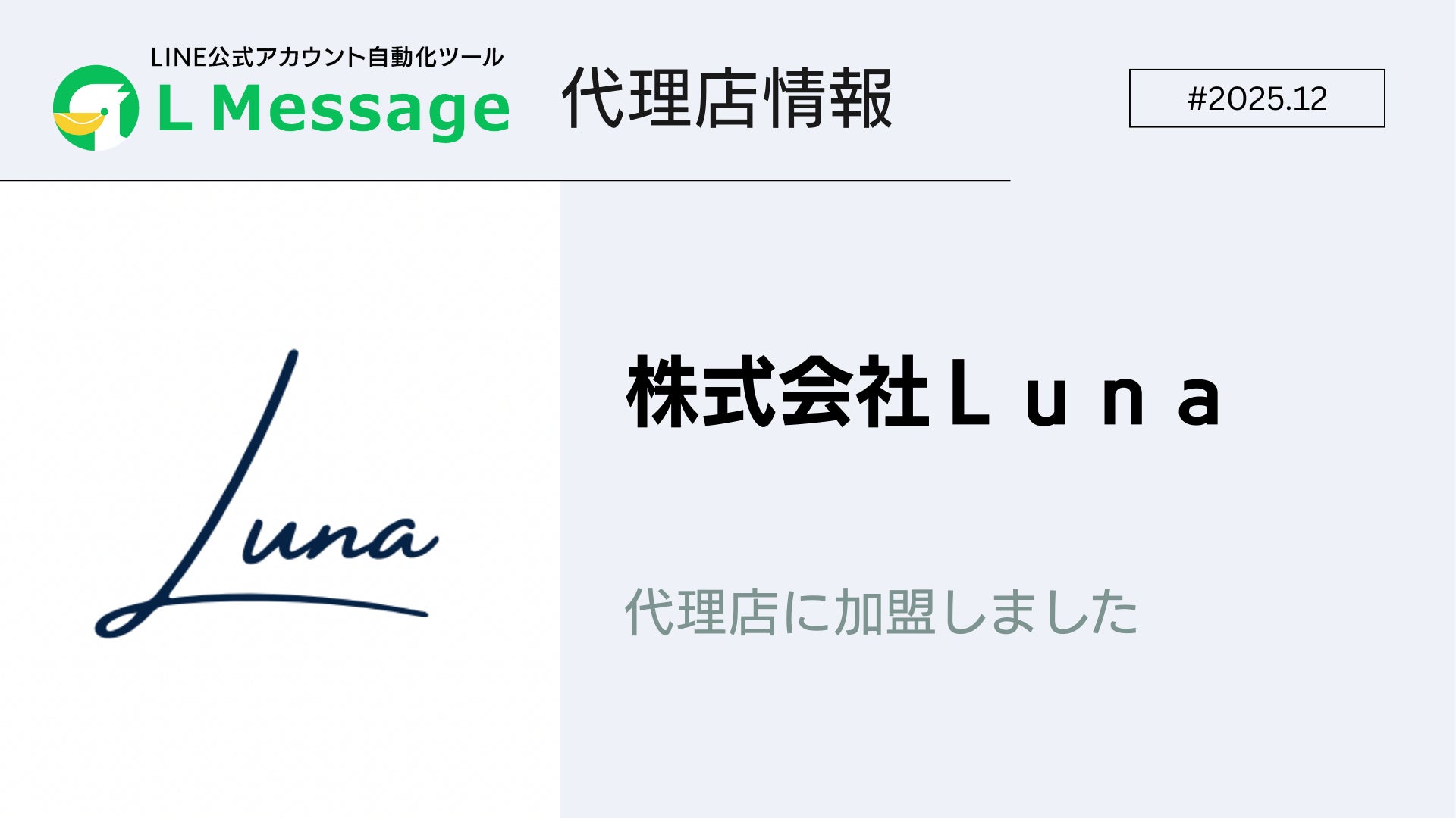 LINE公式アカウント拡張ツール「L Message(エルメッセージ)」の代理店に、株式会社Lunaが2025年12月10日(水)に新たに加入しました。