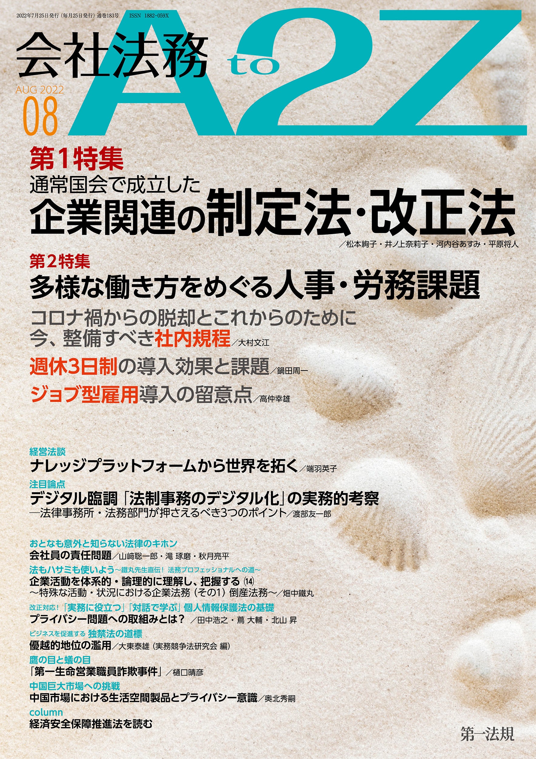 【会社法務A2Z】最新の企業トレンドや法改正情報の解説を毎月お届け!2022年8月号では通常国会で成立した企業関連の制定法・改正法を解説!