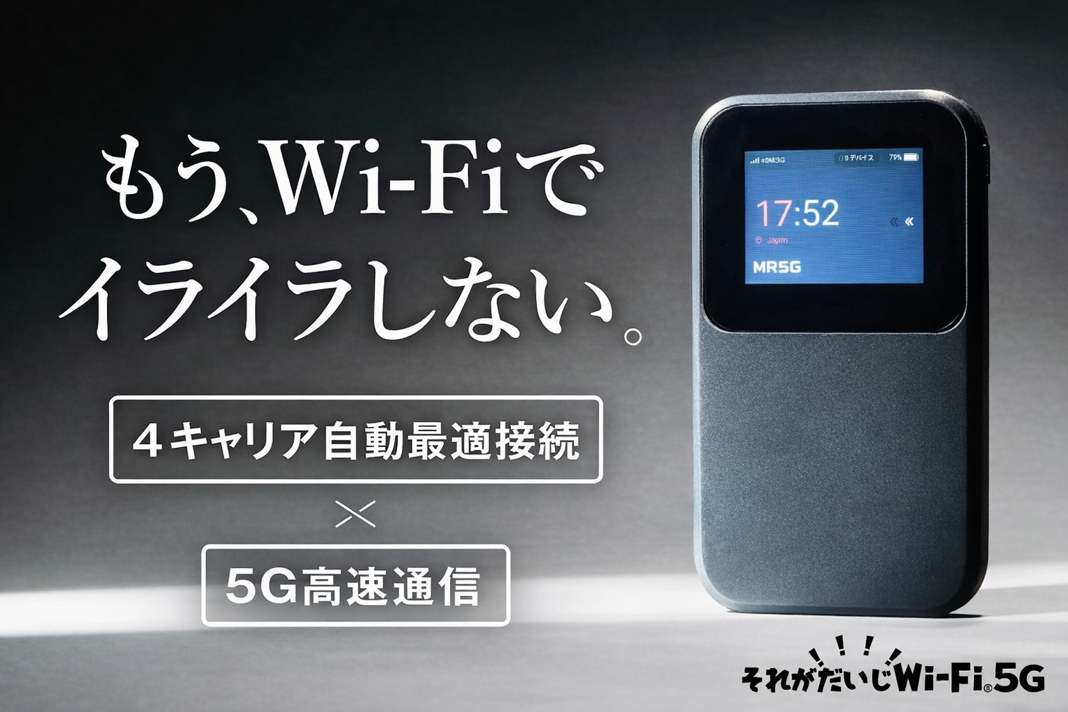 格安モバイルWi-Fiサービスで人気の“それがだいじWi-Fi”から、5G対応次世代型モバイルWi-Fi新登場!NTTドコモ・au・ソフトバンク・楽天モバイルの国内大手4キャリア回線に対応。
