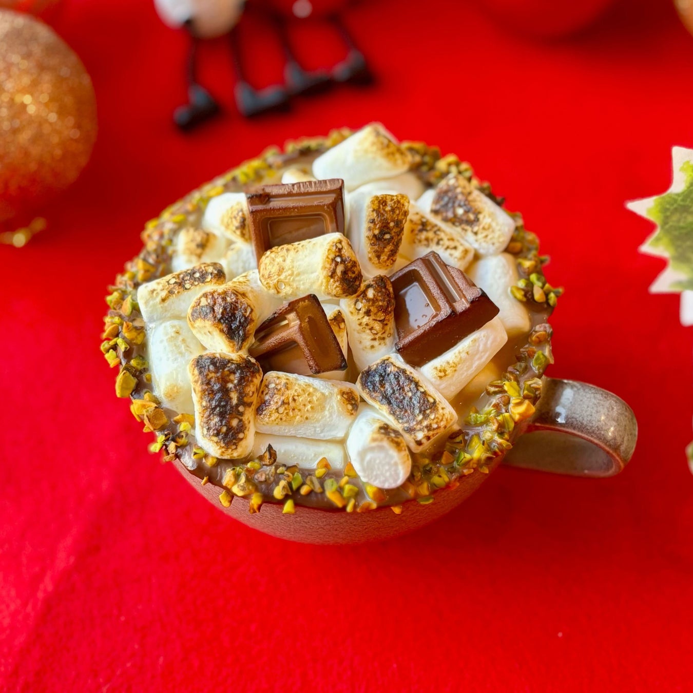 マシュマロを贅沢に使用した、寒い冬にぴったりなドリンクメニュー。ピスタチオがアクセントです。