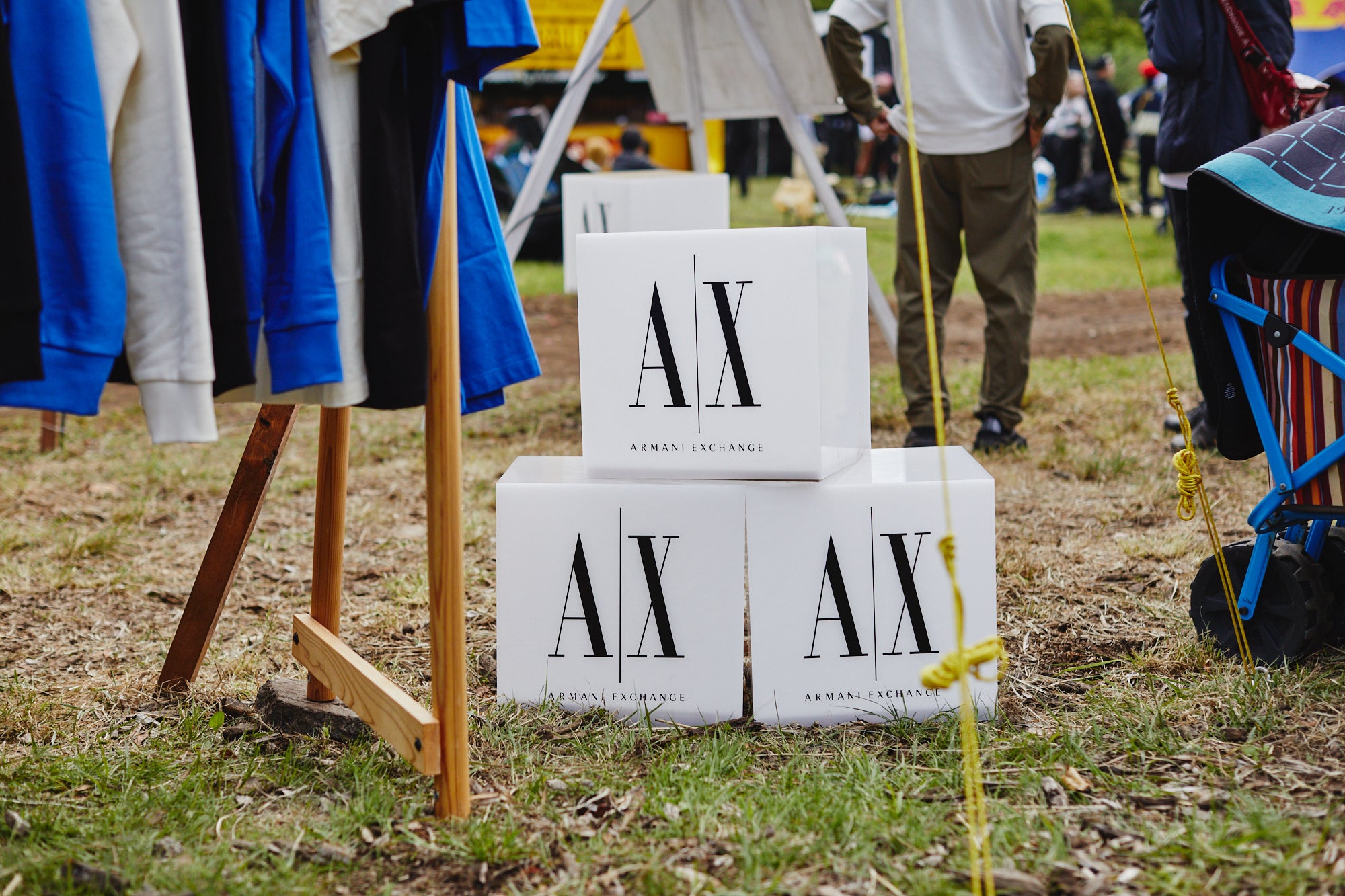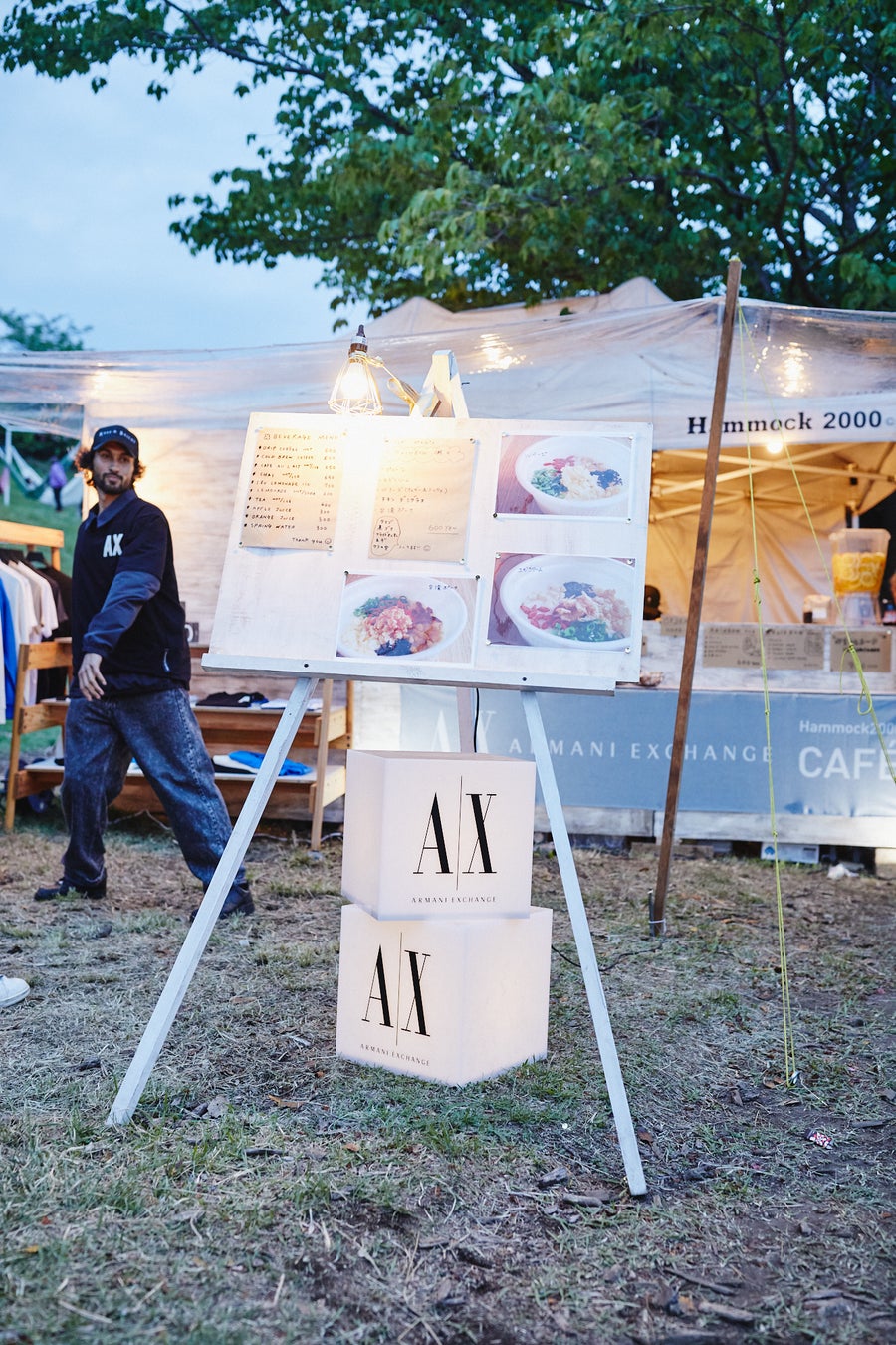 今回、A|Xアルマーニ エクスチェンジは、「Rainbow Disco Club 2023」内のカフェエリアに「A|X CAFE Hammock2000」を初出店しました。A|Xのブランドロゴが掲げられたテント風のカフェでは、フェスのムードにピッタリなリラックス感のあるオーバーサイズコレクションを中心に、アルマーニ エクスチェンジの世界観を感じられるアイテムが販売されたほか、*「A|X denim Exchange」というデニムリサイクルプロジェクトの一環として、リサイクルボックスが設置され、来場者へA|X アルマーニ エクスチェンジの社会貢献活動をご紹介しました。