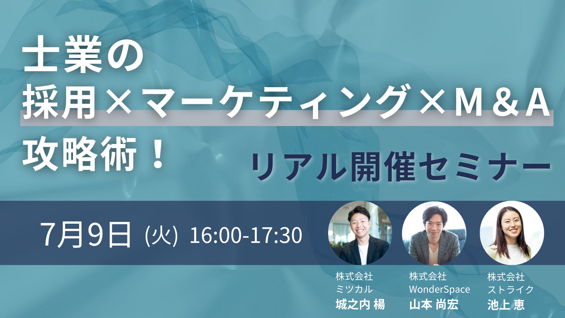 士業のための【採用・マーケティング・M&A】攻略術!リアル開催セミナー実施
