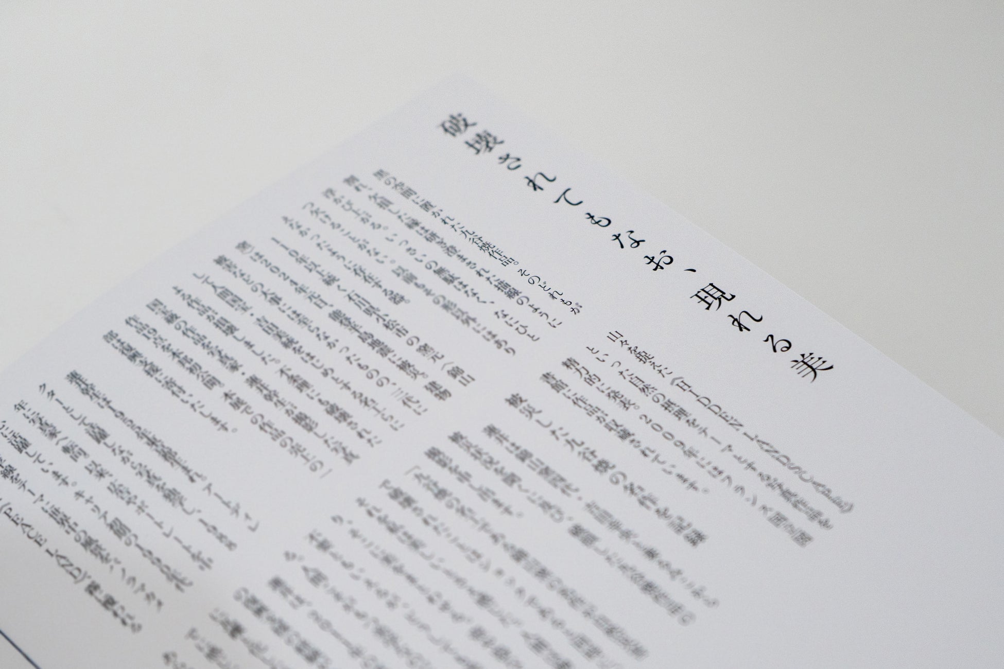 この展覧会にあわせ、作品画像や蓮井幹生の撮影に込めた想い、九谷焼窯元「錦山窯」の物語を収録した全16ページの特別冊子を制作。来場者アンケートにご協力いただいた方へプレゼントいたします。ぜひ会場で、写真を通じて伝えられる「損壊の中に宿る美」の世界を体感し、この冊子とともにその余韻をお持ち帰りください。