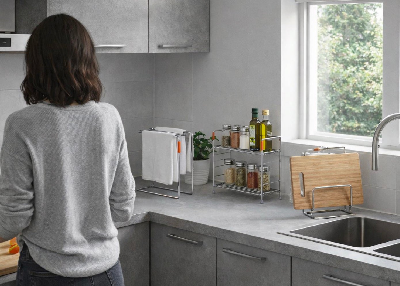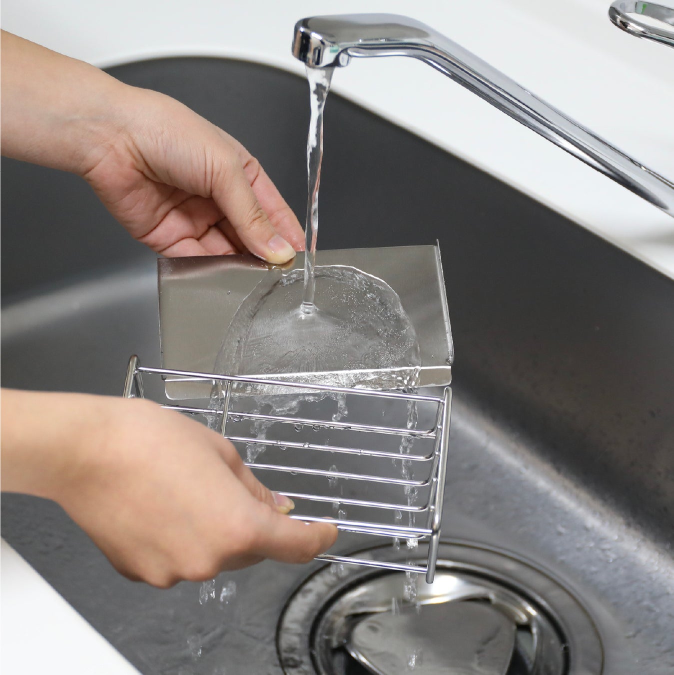 シンク周りの“ごちゃつき”を減らす。水切れのいいステンレススポンジスタンド。