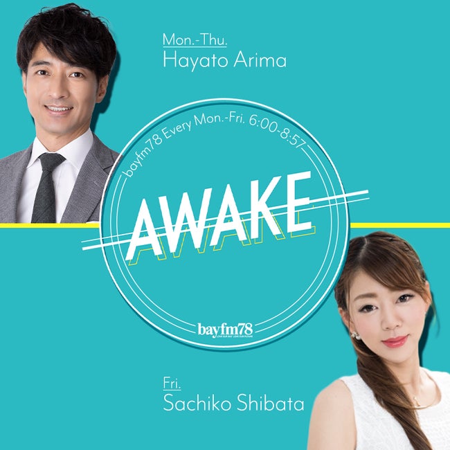 毎週月曜日~金曜日 6:00~8:57『AWAKE』 DJ:有馬隼人(Mon.-Thu.)、柴田幸子(Fri.)