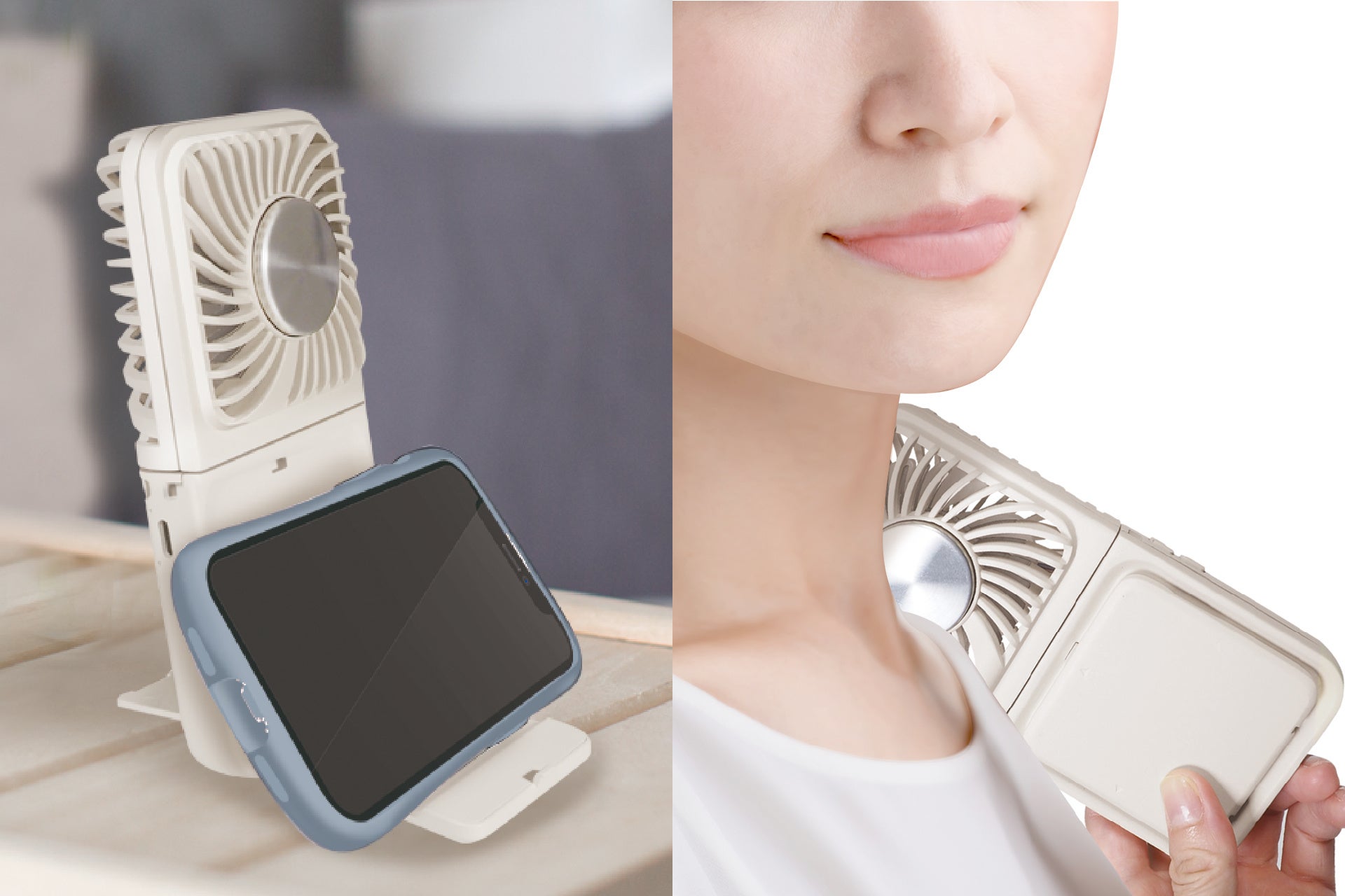 商品名:4WAYペルチェ付き折りたたみファン(ホワイト/ベージュ)