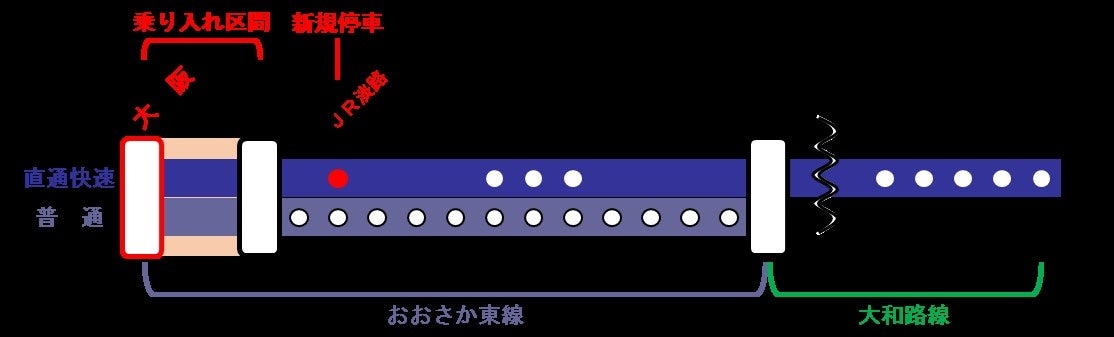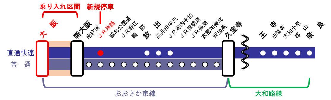 あわせて現在、新大阪~久宝寺駅間で運転しているおおさか東線の列車が乗り入れます。