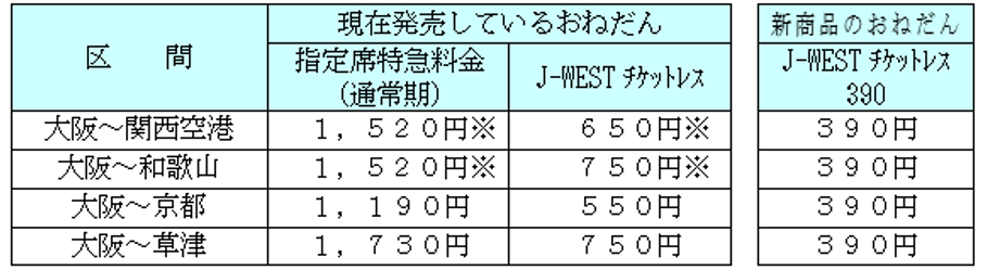 現在、近畿圏の特急列車をチケットレスでお手軽にご利用いただける「J-WESTチケットレス」を発売しておりますが、お客様の日頃のご利用への感謝と、特急「はるか」「くろしお」が大阪駅(うめきたエリア)地下ホームに新たに停車することを記念し、期間限定で「J-WESTチケットレス390」を新規設定し、一律390円で発売いたします。