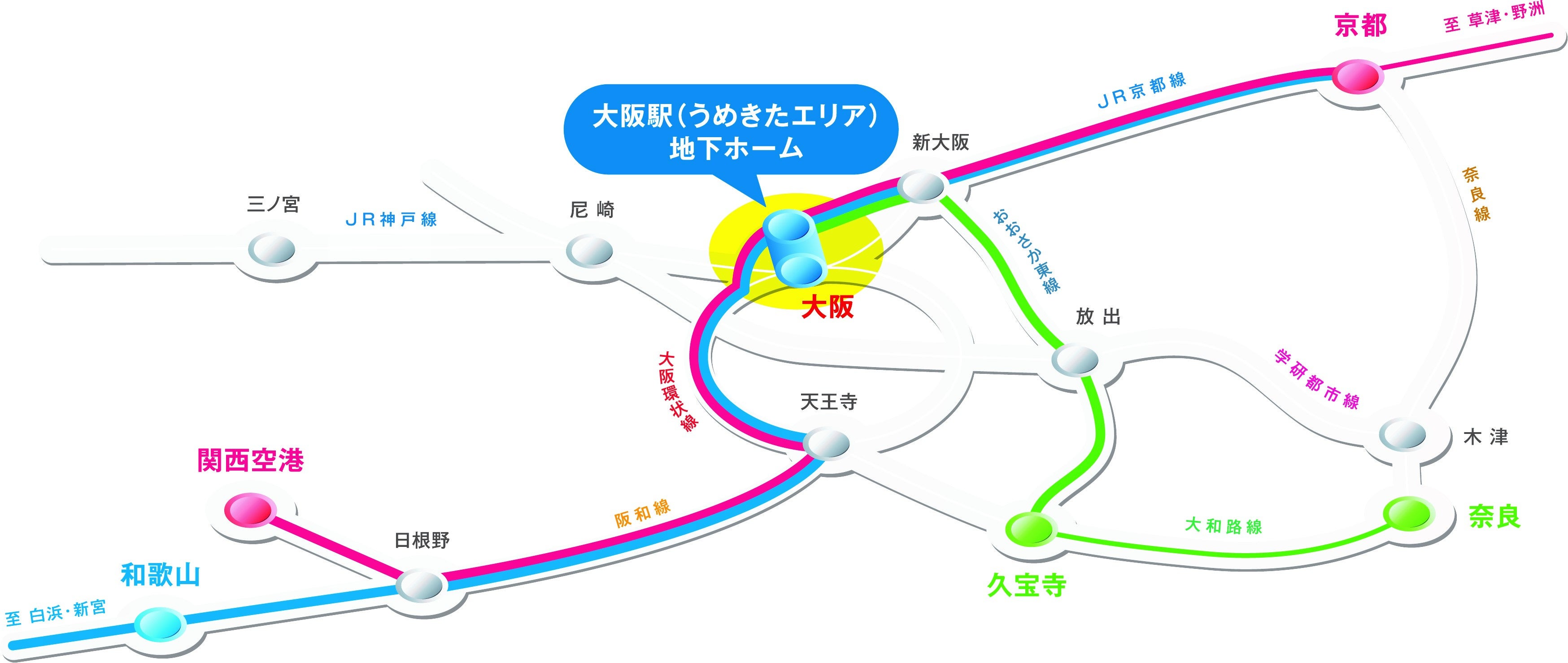 関西エリアの「玄関口」である大阪駅の拠点性がさらに高まり、関西エリア全体のネットワークがより強化されますので、ぜひご期待ください。