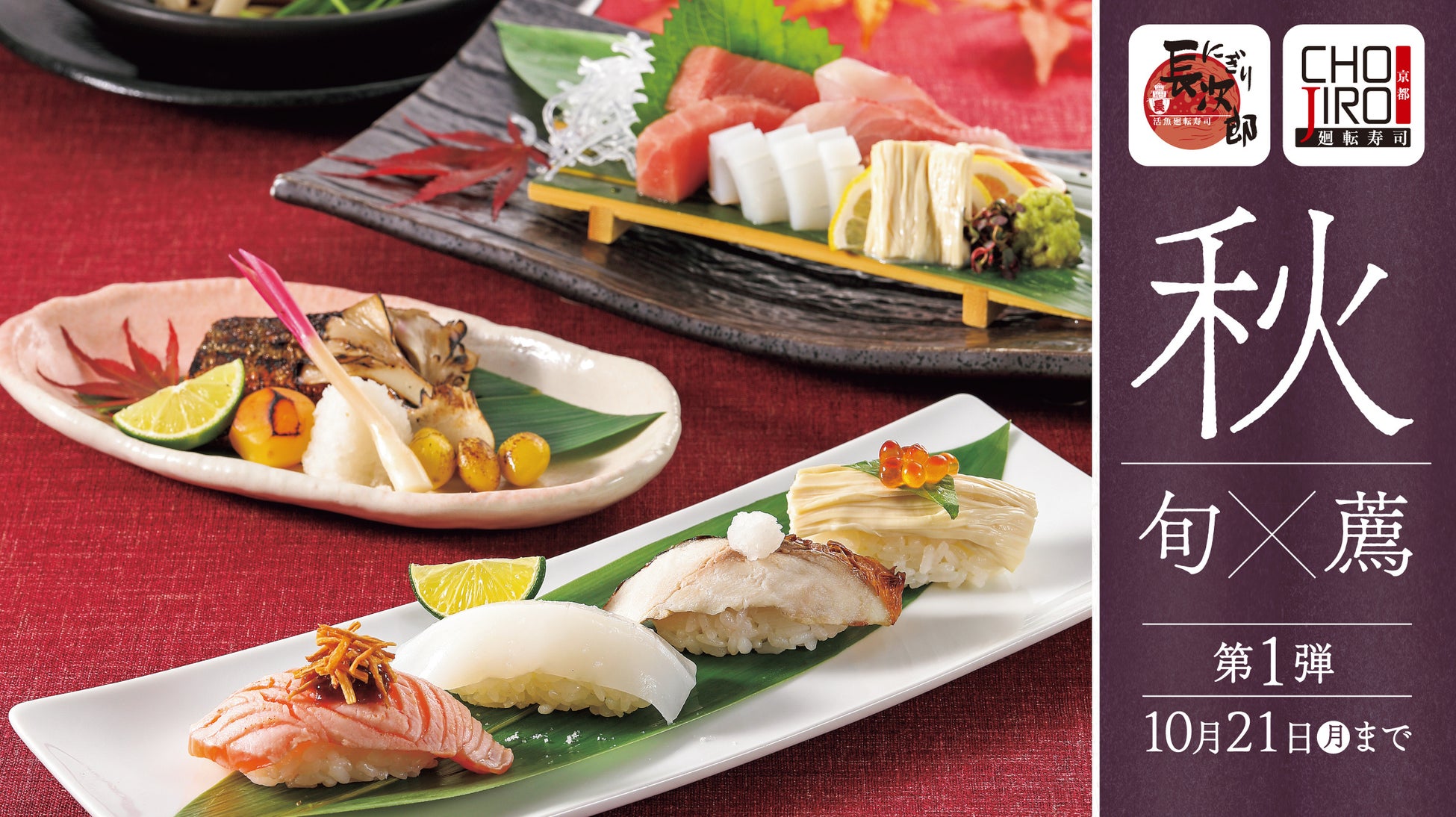 株式会社フーズネット(本社・⼤阪府⼤阪市、代表取締役社⻑・加藤誠)が運営する「活⿂廻転寿司にぎり⻑次郎」 「廻転寿司CHOJIRO京都」は、2024年9月18日(水)から10月21日(月)まで、「秋メニュー -第1弾-」を販売いたします。「秋 旬(しゅん)×薦(すすめる)」と題して、金目鯛や焼き鯖など、期間限定のネタに加え、秋田や宮城など東北のご当地料理をお楽しみいただけます。