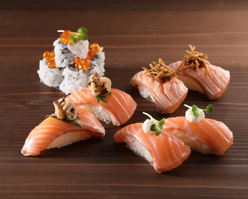 にぎり長次郎の中でも、特に人気のネタはサーモンです。秋メニューと同時にサーモンフェアも開催いたします。普段にはない、特別なサーモンメニューをたくさんご用意いたします。以前に大変ご好評いただいておりました、サーモン・とろサーモン・いくらがセットになった復刻版サーモン三昧を販売いたします。
