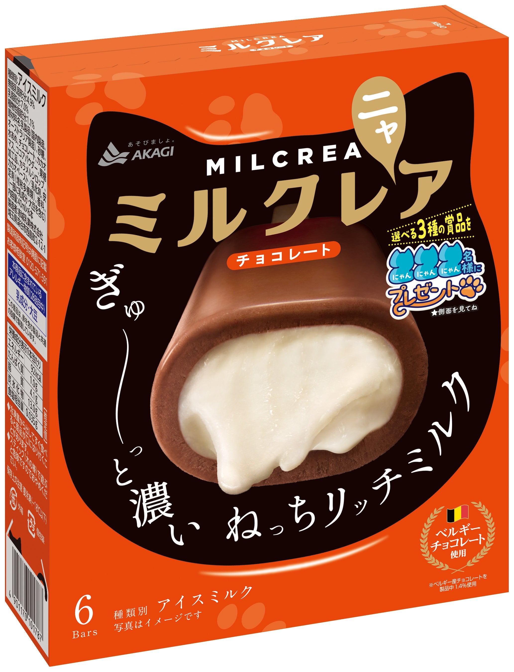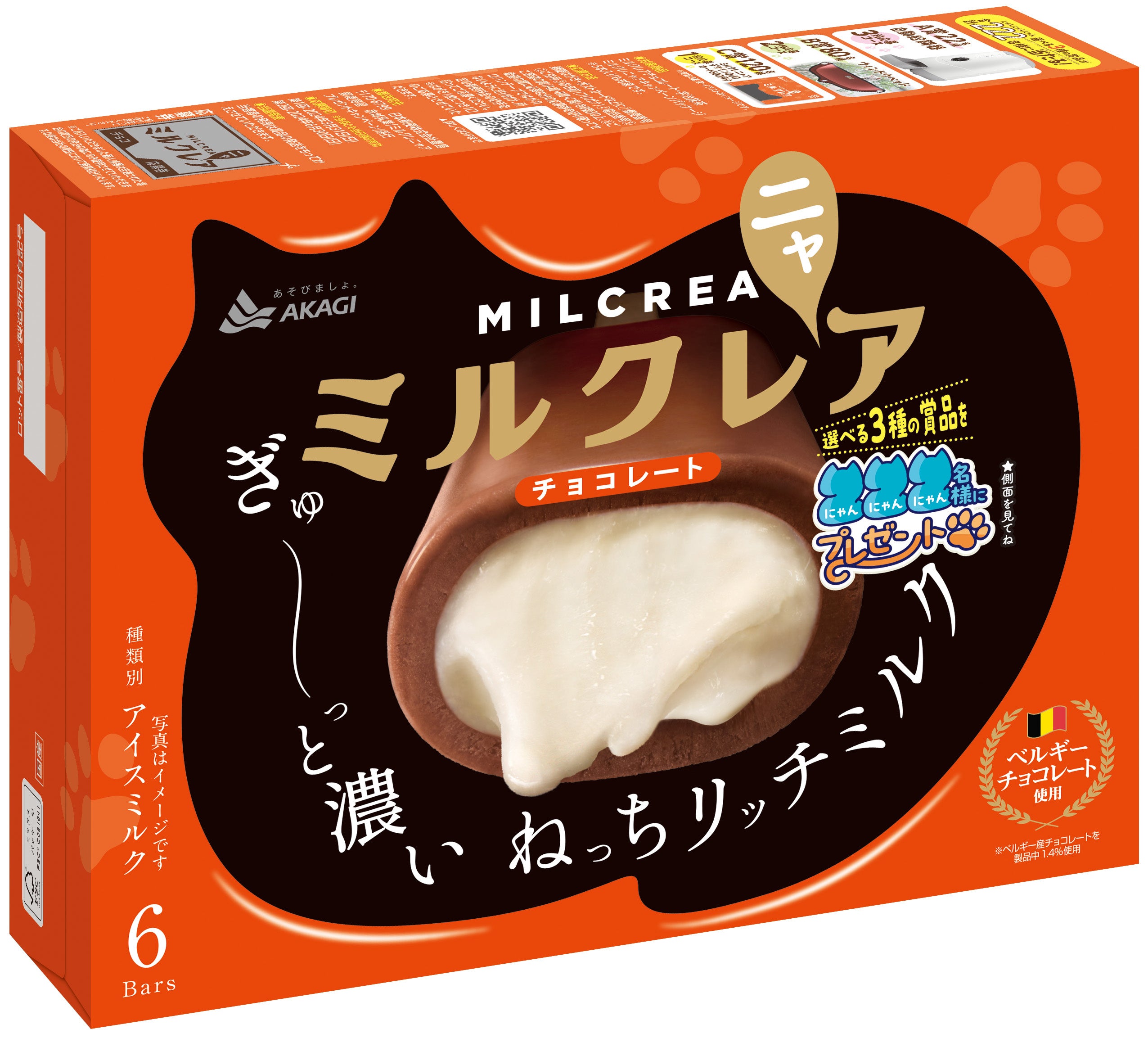 ミルクレア(MILCREA)は、ねっちりとした食感と濃厚な味わいが特徴のミルクアイスを、チョコレートアイスまたは宇治抹茶アイスで包み込んだ商品です。今回、「チョコレート」と「宇治抹茶」の味わいを追求し、ぎゅ~っと濃いねっちリッチミルクの美味しさを、より引き立てるリニューアルを行いました。