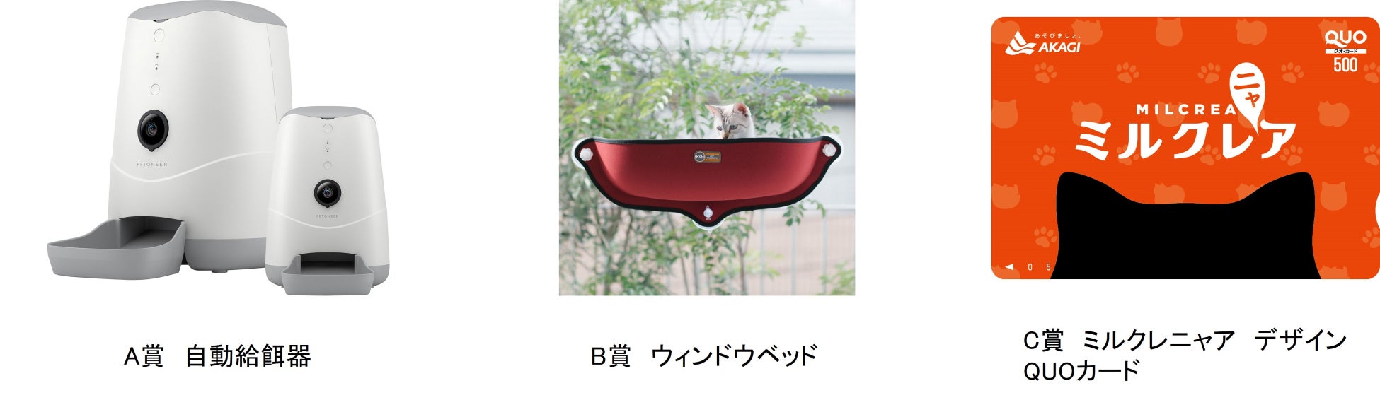 「選べる3種の賞品を222(ニャンニャンニャン)名様にプレゼント」キャンペーンでは、猫好きが思わず喜ぶようなグッズをご用意しております。ぜひこの機会にご応募ください。
