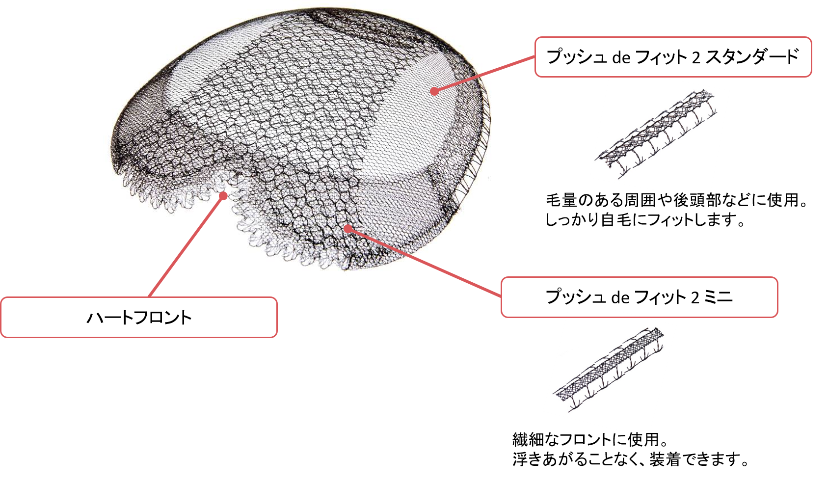 2022年3月に発売したピンでとめないウィッグ新『フィーリン』は、“サッとのせてキュッキュ”とするだけの簡単装着に加え、よりソフトなつけ心地を実現するために新開発した「プッシュ de フィット2※」を採用。しっかり自毛を絡めてキャッチするので、風が吹いても安心のフィット感を実現しました。