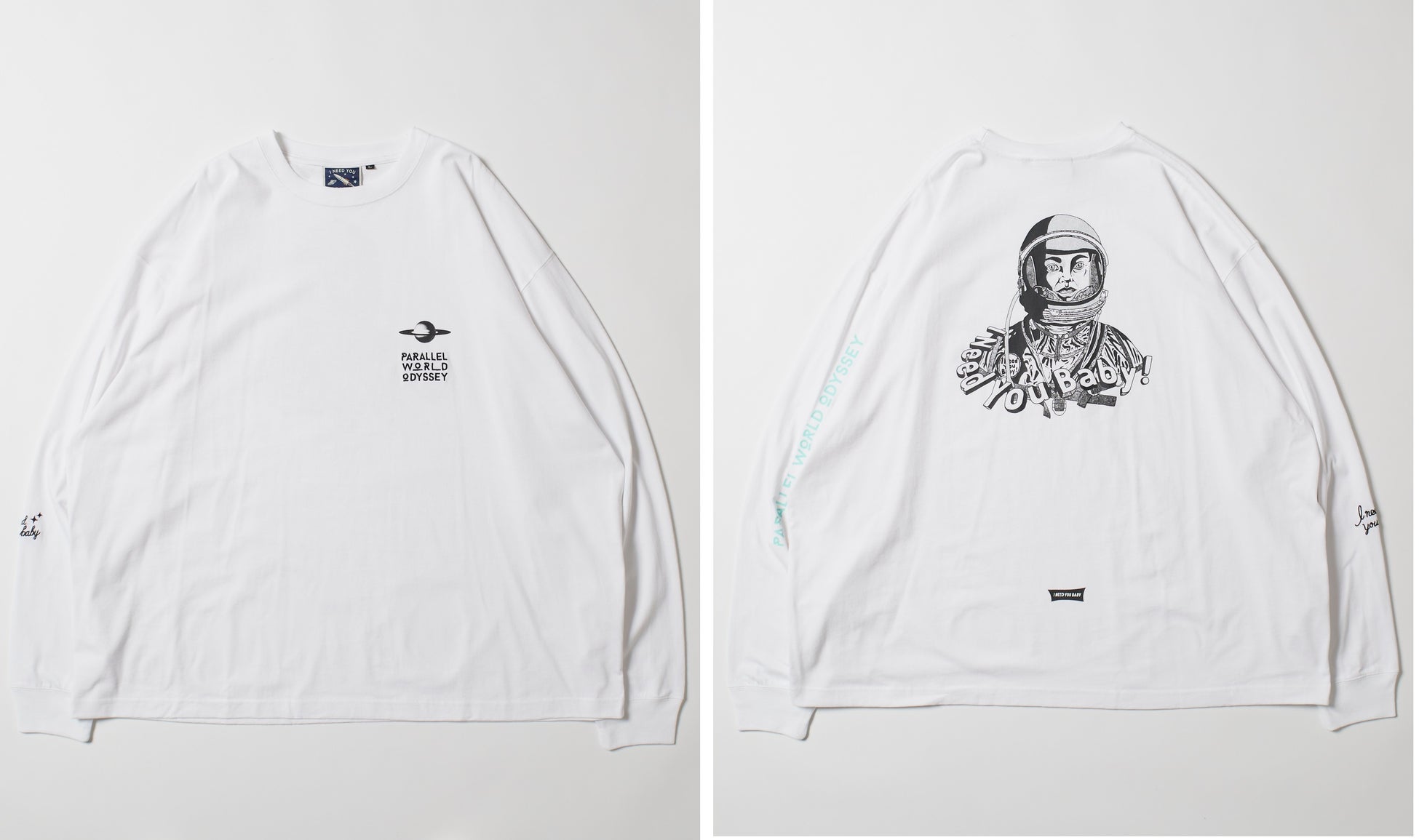 Tシャツなどのカットソーに描かれているグラフィックは、“Parallel World Odyssey”をテーマに別世界、宇宙といった遊び心あるグラフィックを映像ディレクター、アートディレクター田中 裕介が担当している。