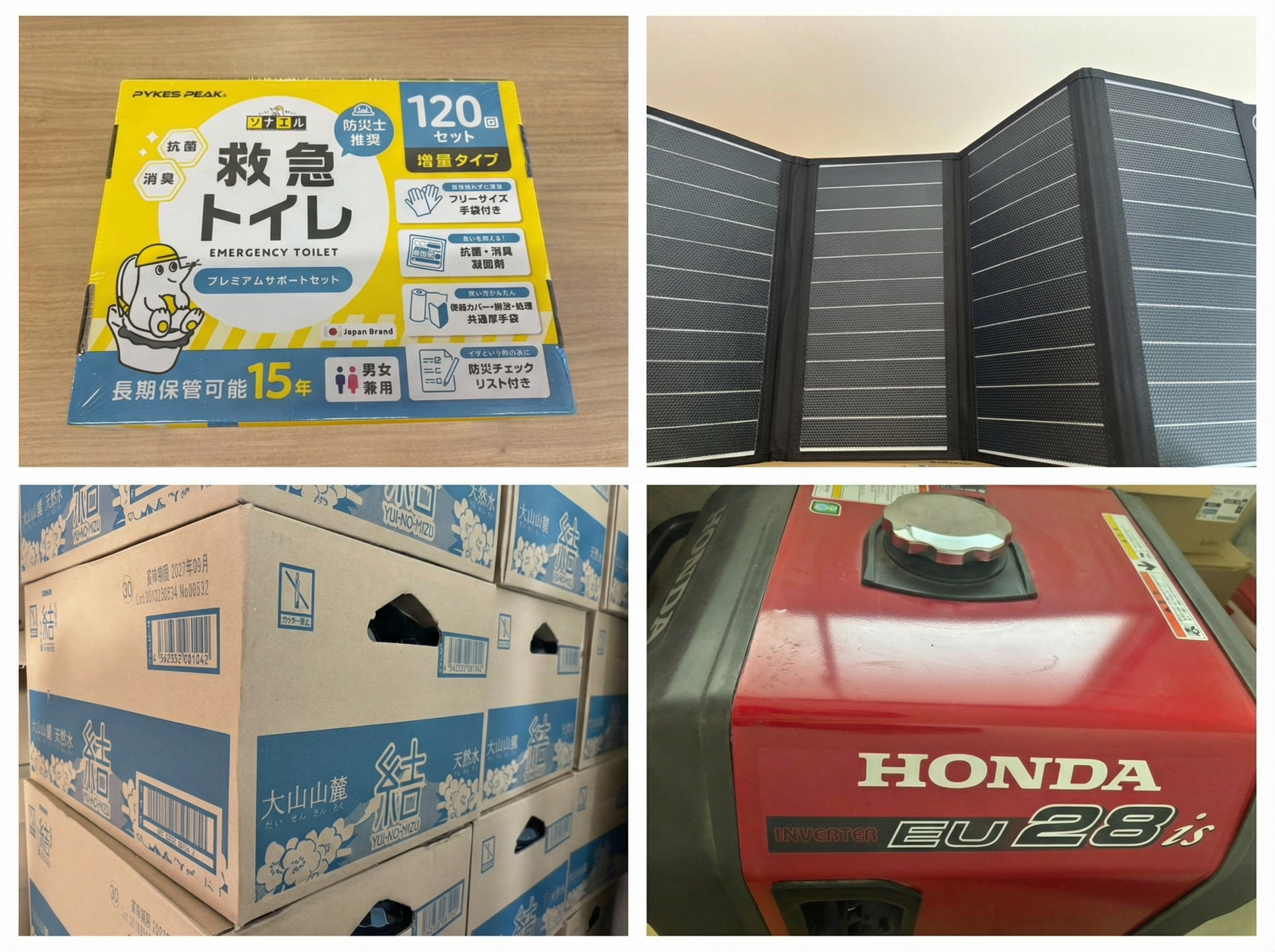 飲料水300L・簡易トイレ500回分・発電機・太陽光パネルで初動期の安心確保