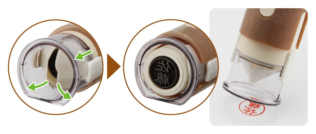 普段閉じている印面先端のシャッターが、なつ印動作の際、自然に開閉します。
