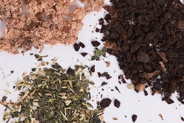 プラスチックの使用部品の55.6%に再生素材※3を使用。ホルダー部には、杉の木くず、茶葉の不要部分、珈琲の豆かすの自然素材の原料を使用しました。