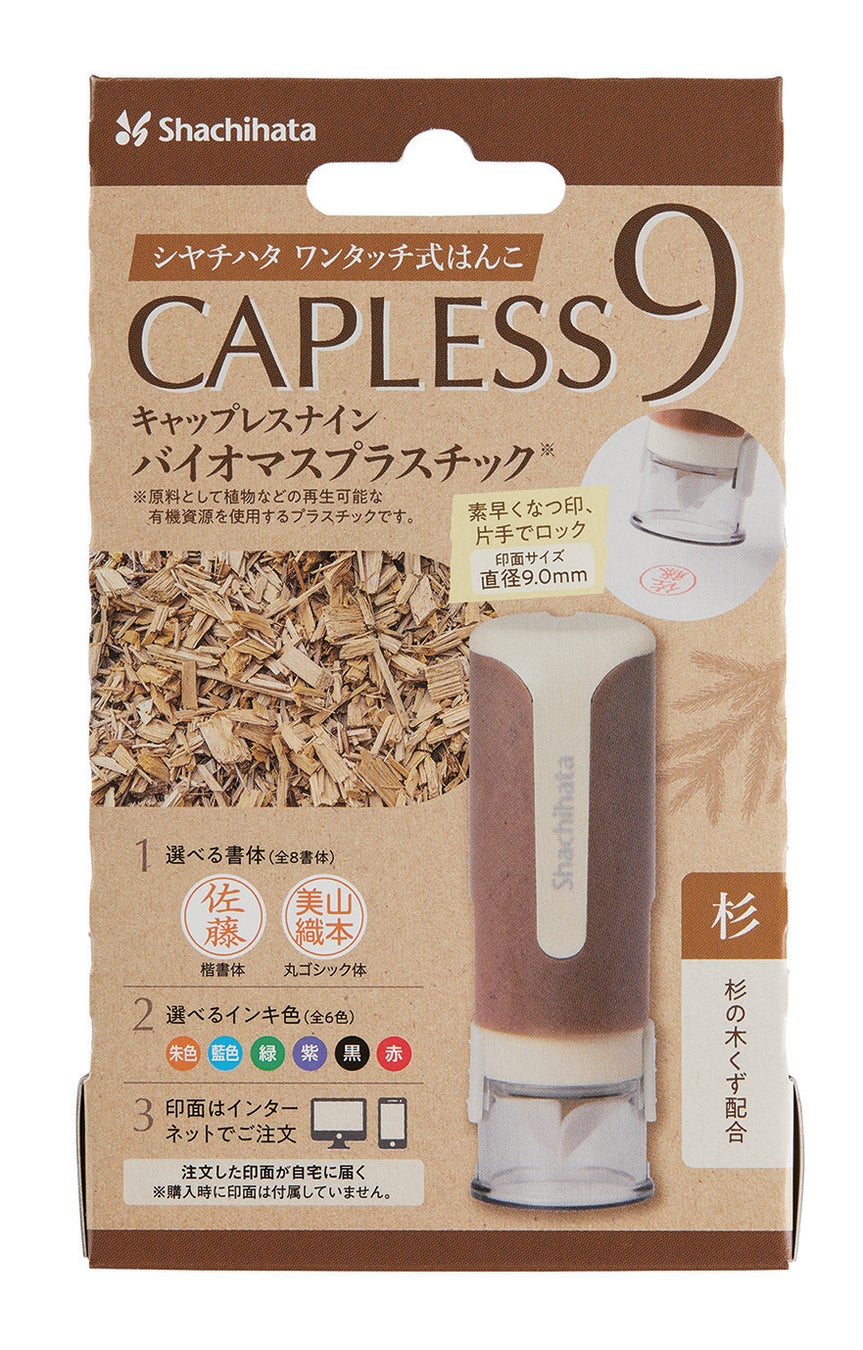 ユーザーファーストを追求し次の100年も「しるしの価値」を提供し続けるシヤチハタ株式会社※1(代表取締役社長 舟橋 正剛 本社:愛知県名古屋市)は、この度、片手でスマートになつ印ができる「キャップレス9」に、再生可能な有機資源を使ったナチュラルカラーのネーム印「キャップレス9 バイオマスプラスチック※2」を追加し、2025年1月6日(月)より発売します。