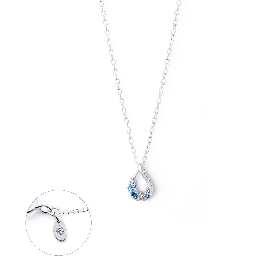 チェーンの端に付けられたチャームには「幸せへ導く」を意味するホワイトトパーズが輝きます。