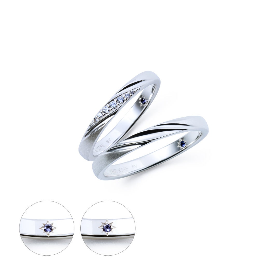 リングの内側は、こっそりデザインされた星モチーフに「一途な想い」を意味するアイオライトが輝きます。