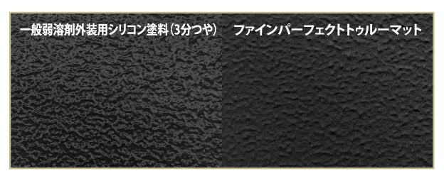 ファインパーフェクトトゥルーマットはわずかなつやも残らない、“真のつや消し塗料”です。多くのつや消し塗料は、つや有りの塗料をベースに作られるため、どうしてもわずかなつやが残りますが、ファインパーフェクトトゥルーマットはイチからつや消し塗料として開発されました。緻密な塗膜構造でいわゆる「奥つや※」と呼ばれるわずかなつやも残りません。