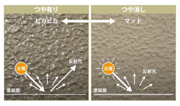 ※艶消し塗料を施工した際に、塗膜にわずかに現れる艶のこと