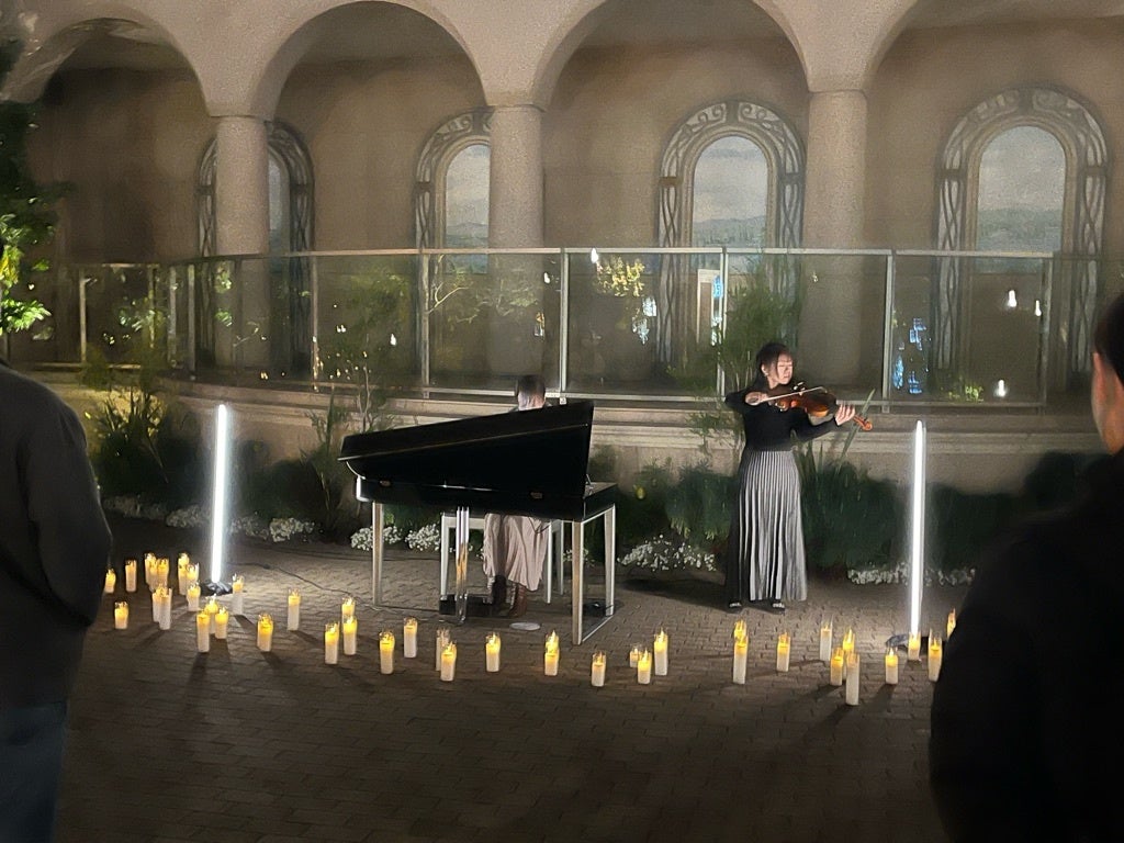 みなとみらいを象徴する観覧車を背景にした記念撮影スポット設置し、さらにLEDキャンドルの光に包まれる幻想的なキャンドルナイトを開催しました。イベントには200名以上の来場者が訪れ、チャペル内でくつろぎながら、非日常的な空間でロマンティックな時間をお過ごしいただきました。さらに、横浜が日本のジャズ発祥の地とされていることにちなみ、施設内で初のジャズコンサートを開催しました。聴き馴染みのある定番曲から季節感あふれる楽曲まで、来場者の心に響く生演奏が披露されました。