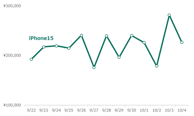 なお9月22日に発売されたiPhone15*1は、10月4日時点で合計146件の取引があり、平均落札額は¥218,010を記録しています。