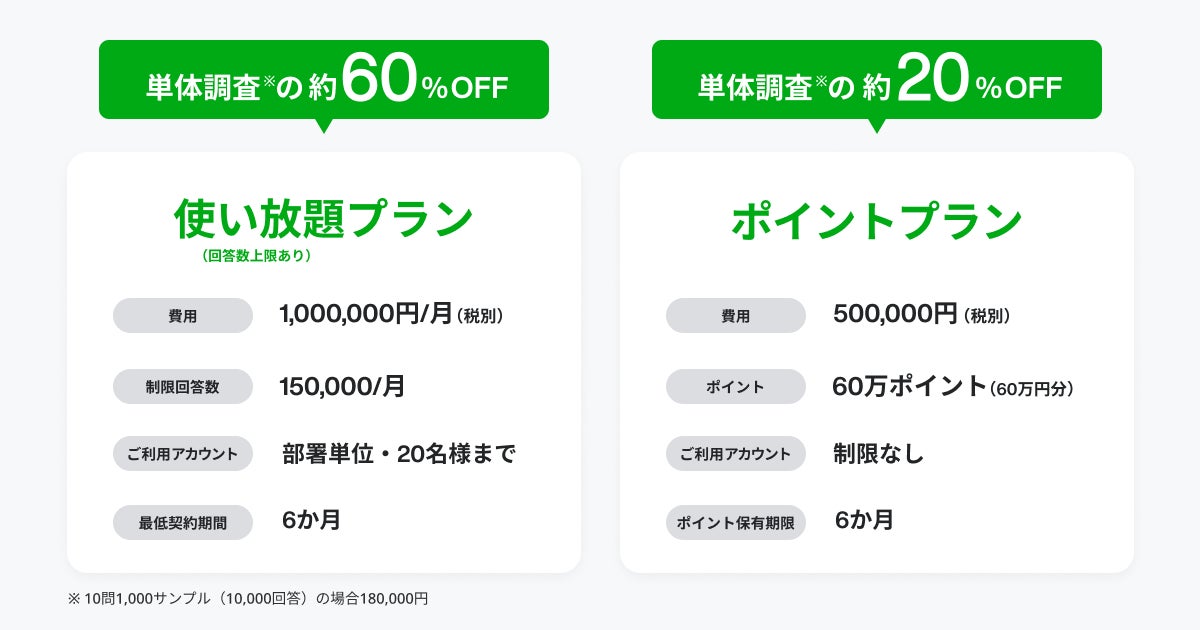 ~調査をより気軽に実施できる「使い放題(回答数上限あり)プラン」と「ポイントプラン」でマーケティング活動を活性化~