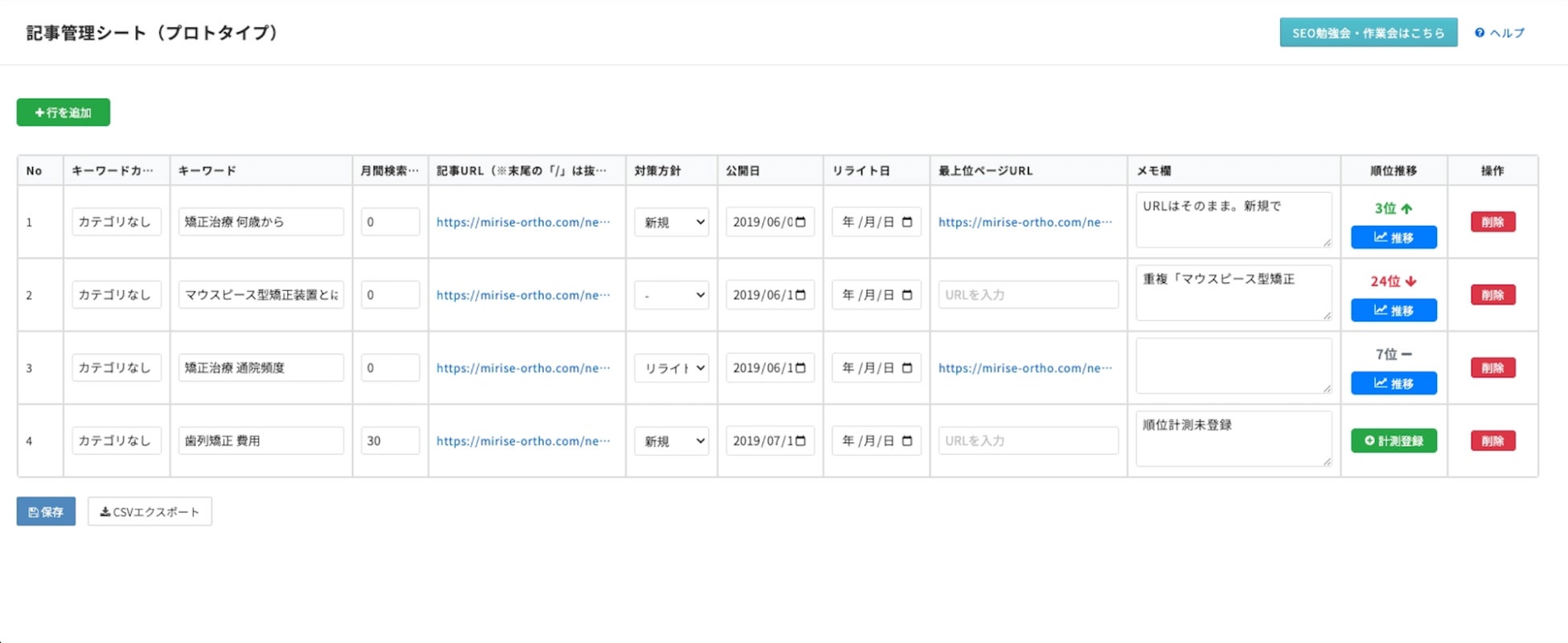 画面上で自動取得された順位を確認・必要に応じてメモなどを更新 |