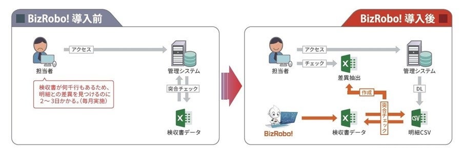 あわせて、国内シェアが高いRPA製品を比較した際に、①ライセンス構成、②価格、③日本語対応の内容、④AI-OCR製品との連携機能などについても検討し、総合的に優位と判断されたことでBizRobo!の導入が決まりました。