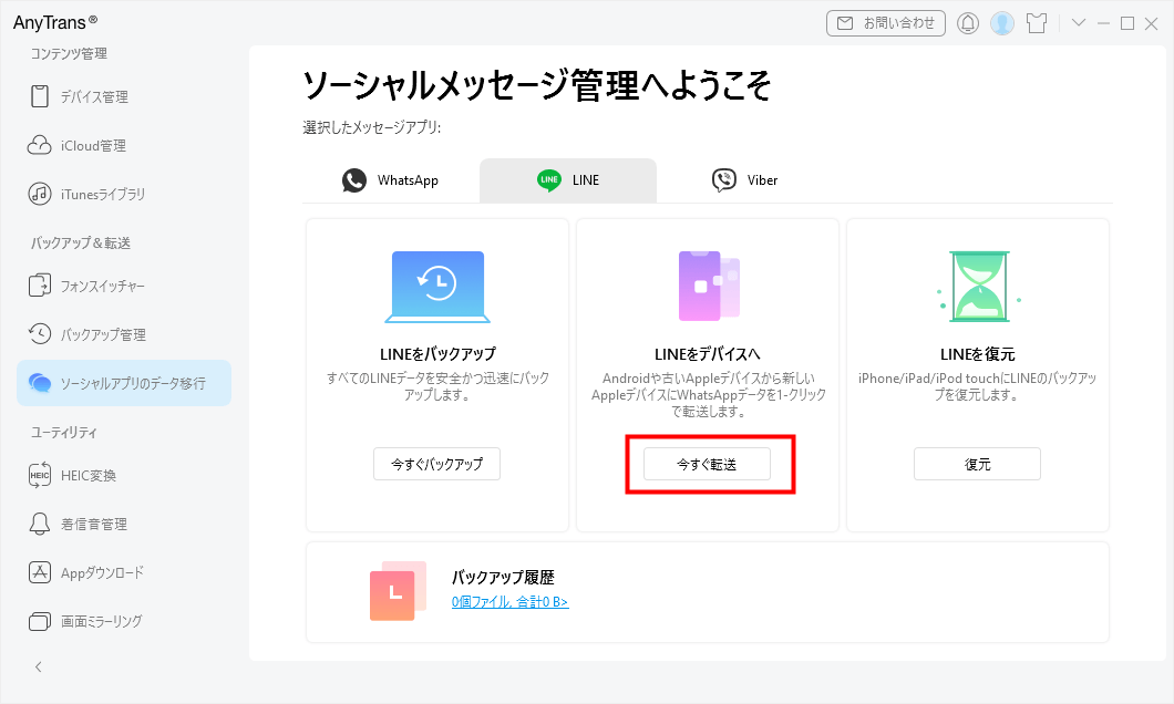 LINE・WhatsAppデータの個別バックアップ・移行