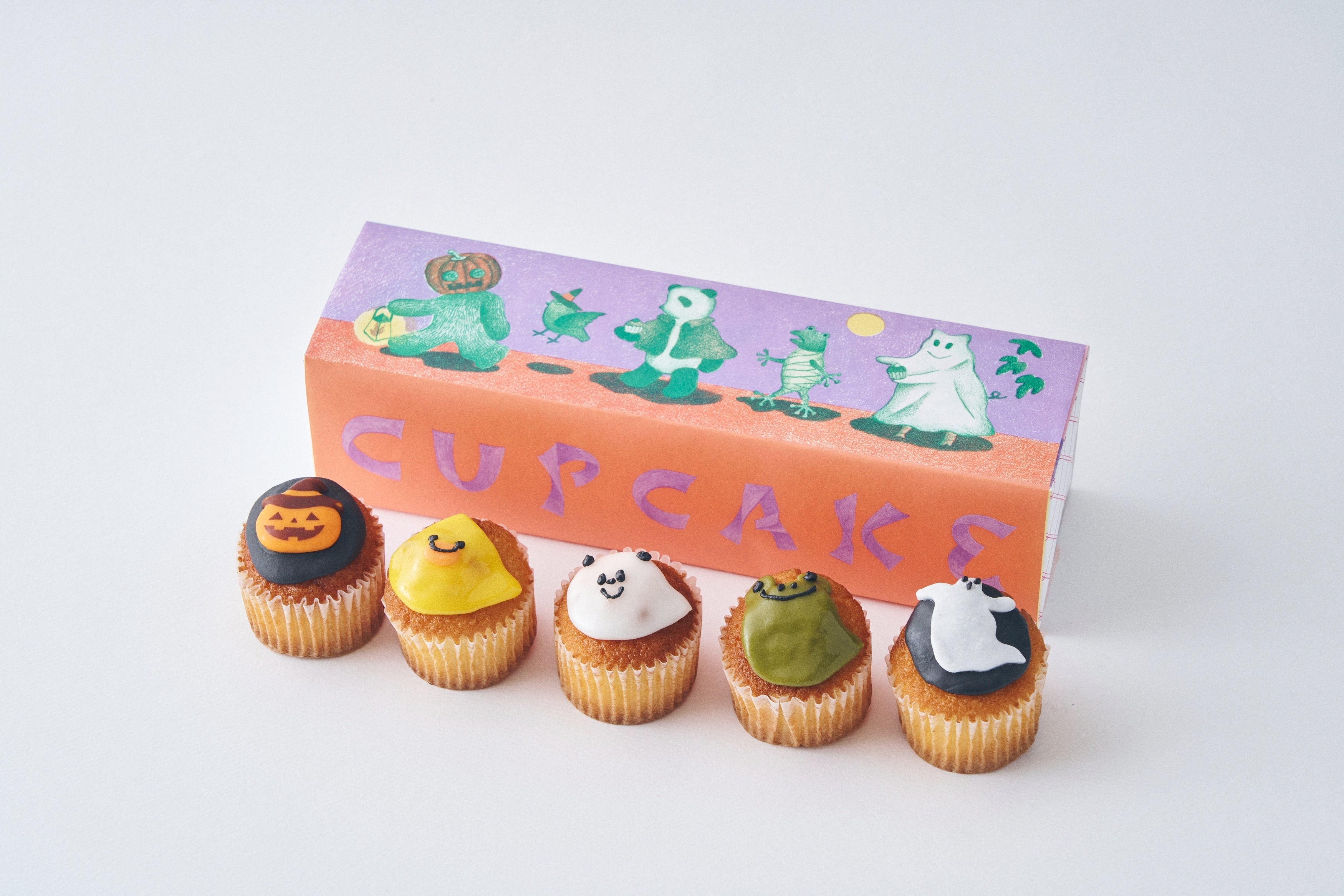 プレミアムバニラカップケーキ5個入りで、イラストレーター・前田ひさえさんによる限定デザインパッケージが華やかに彩ります。1個ずつ個包装で、お配りやトリック・オア・トリートにもぴったり。かわいさとおいしさを一度に楽しめる、季節感あふれるひと箱。