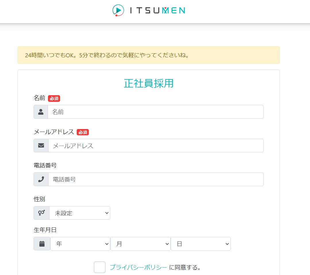 24時間オンライン派遣登録、応募者対応(録画映像で表情が確認出来る)