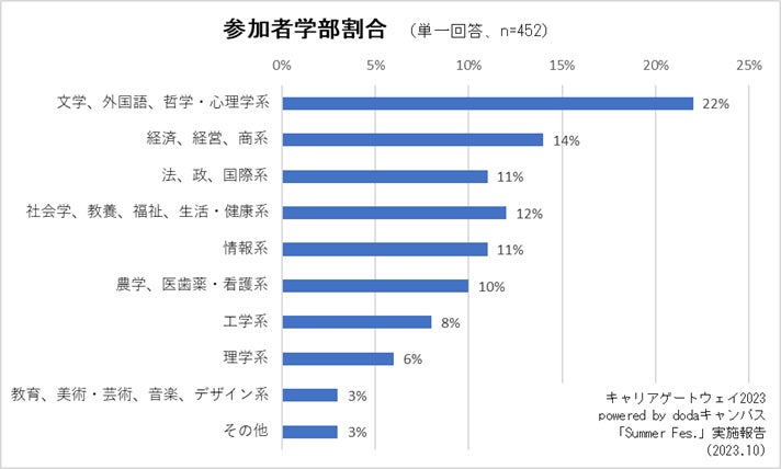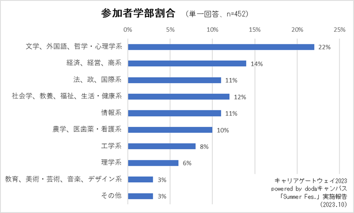 ・参加者特性:大学1年生が45%、大学2年生が55%。参加学生の学部トップは「文学系」(22%)