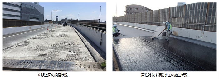 橋梁部でコンクリート床版の劣化を抑制するために、損傷した箇所の補修を行った上で、劣化の原因と