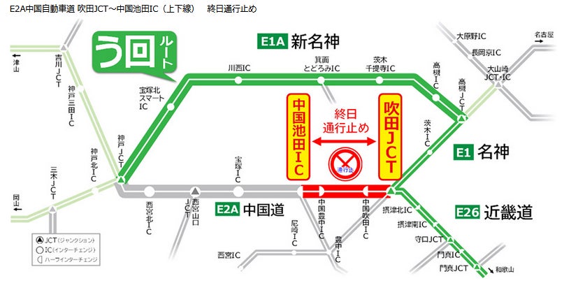 E2A中国自動車道(吹田JCT~中国池田IC)リニューアル工事終日通行止めの完了報告について