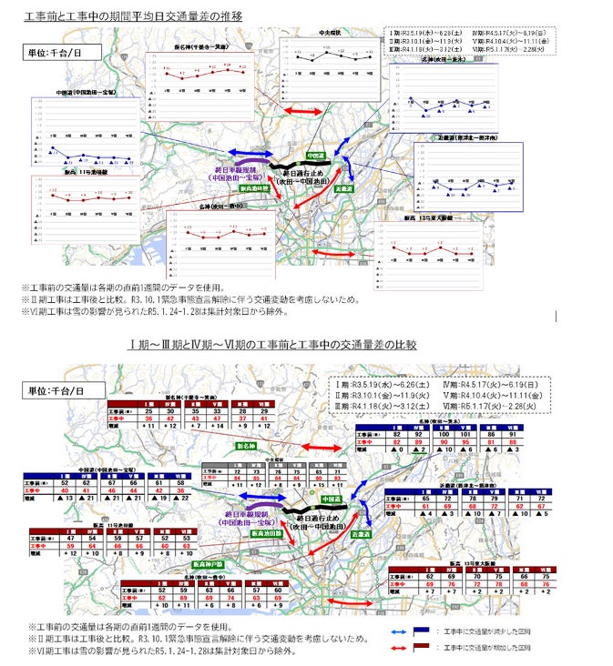 特に新名神では、同時期のI期とIV期、II期とV期、III期とVI期を比較すると、I期~III期よりもIV期~VI期