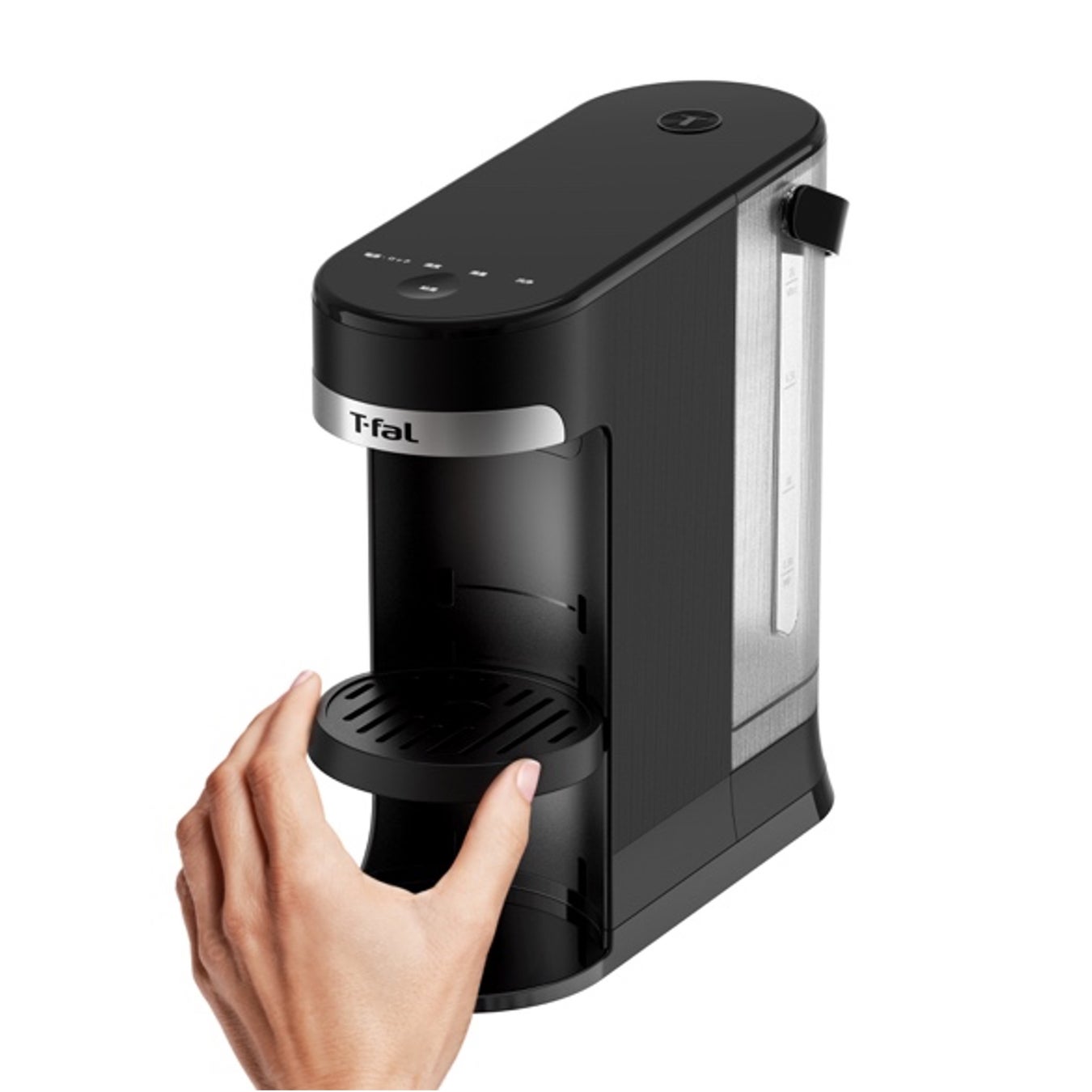 通常のケトルのように持ち上げて注ぐ必要がなく、カップをトレイに置いてボタンを押すだけ。年配の方でも手軽に使えます。継ぎ目のない直感的なタッチパネルで、表示がわかりやすく、簡単に操作できます。