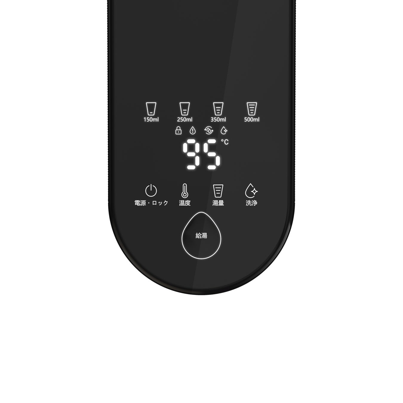 湯温は6段階(70・75・80・85・90・95℃)に設定可能なので、お好みの温度に合わせて、いつものホットドリンクをもっと速く、もっと美味しく楽しむことができます。湯量は4段階(150・250・350・500mL)のプリセットから選ぶことができ、選んだ湯量を給湯できたら自動的にストップするので、お湯を注ぎ終わるまでつきっきりで待つ必要がありません。また、湯量をプリセットから選ばず、給湯ボタンの操作で自由に湯量をコントロールすることも可能です。