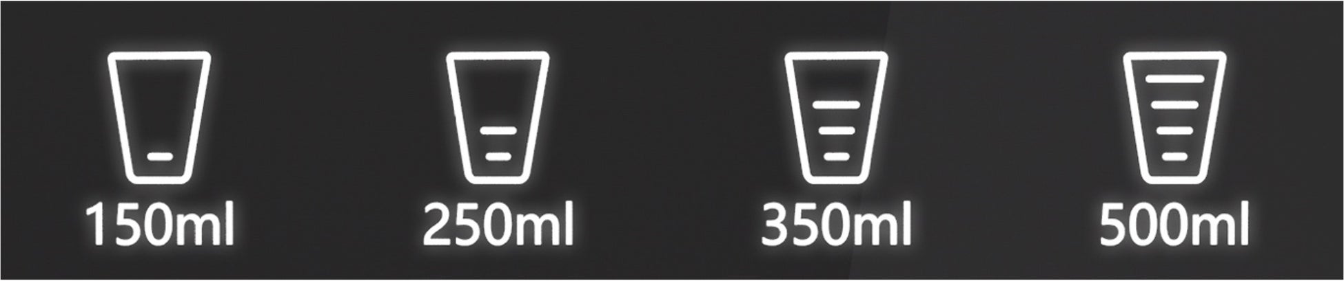 湯量は「150, 250, 350, 500ml」の4つのプリセットから選べます。