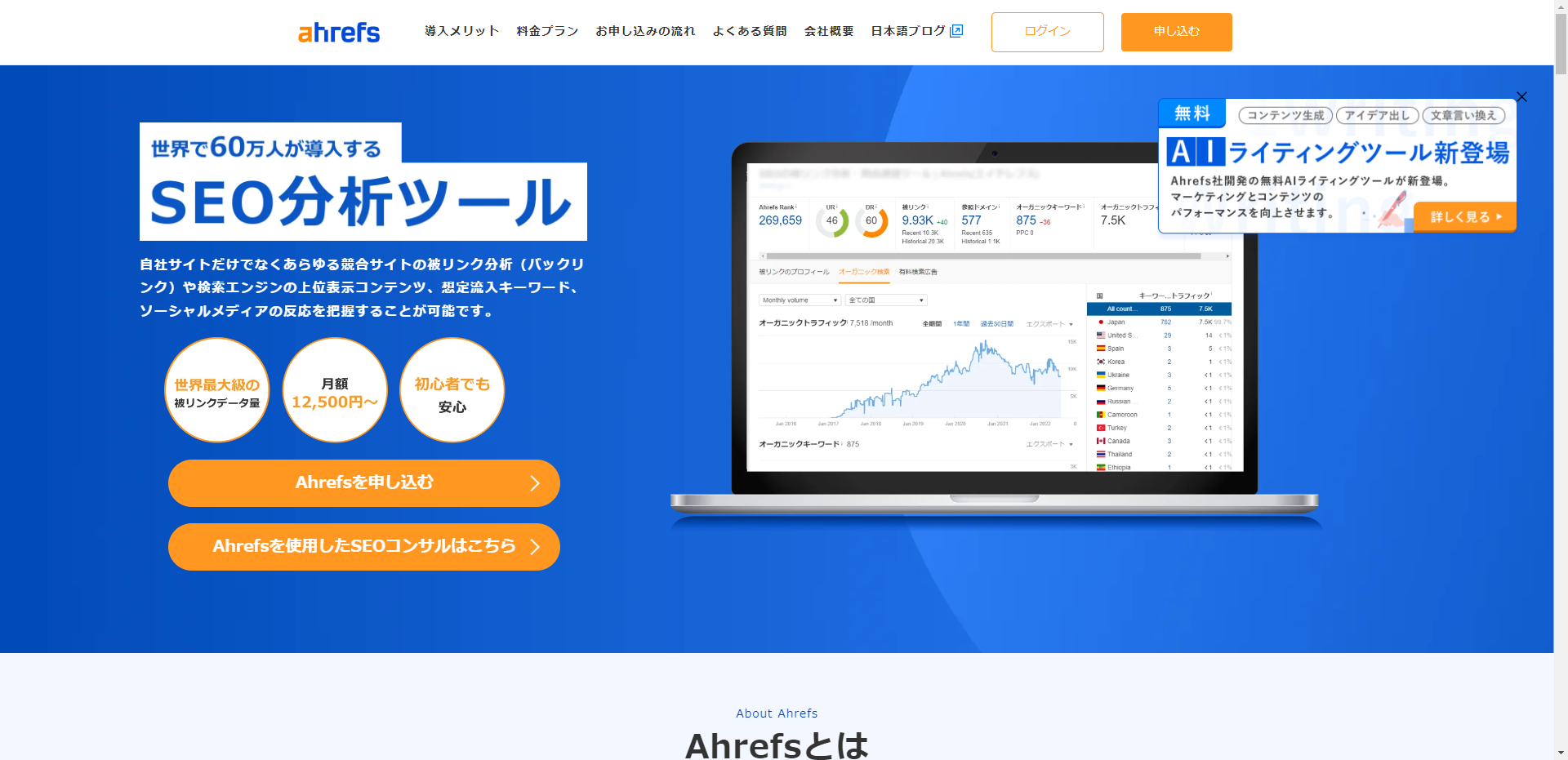 ※ツールの開発・提供は、Ahrefs社が直接おこなっております