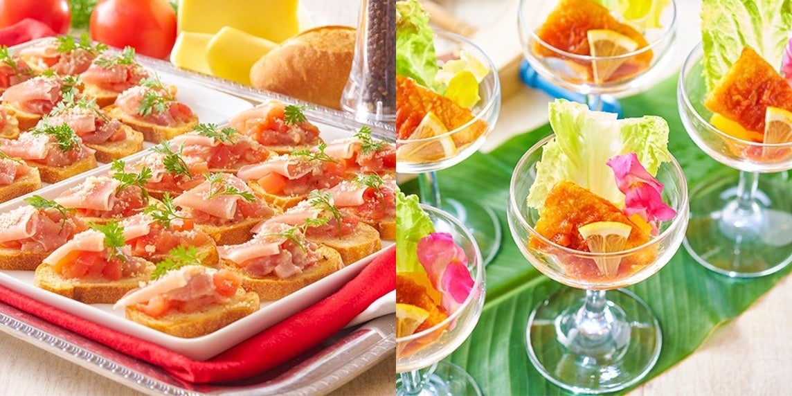 まぐろと生ハムのブルスケッタと白身魚のトマトソース和えは、この夏、ホテル水葉亭がお薦めする前菜2品です。夏らしさを感じる涼やかで色とりどりの料理は、目にも楽しいメニューです。