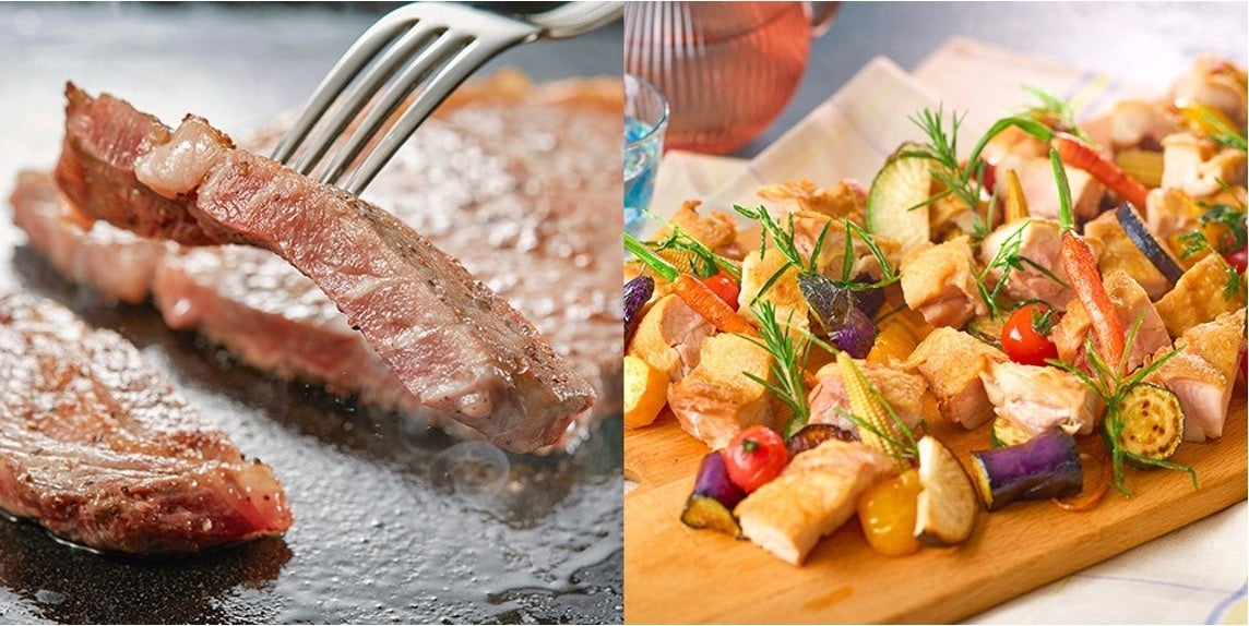 こちらもライブキッチンから焼きたて熱々でご提供するステーキや、カリっと焼き上げた皮目も美味しいローストチキン、ローストポークなどの肉料理も充実しています。